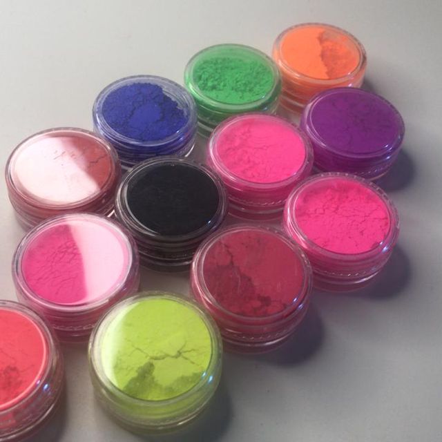 set de 12 pigmentos neon que brillan bajo luz uv